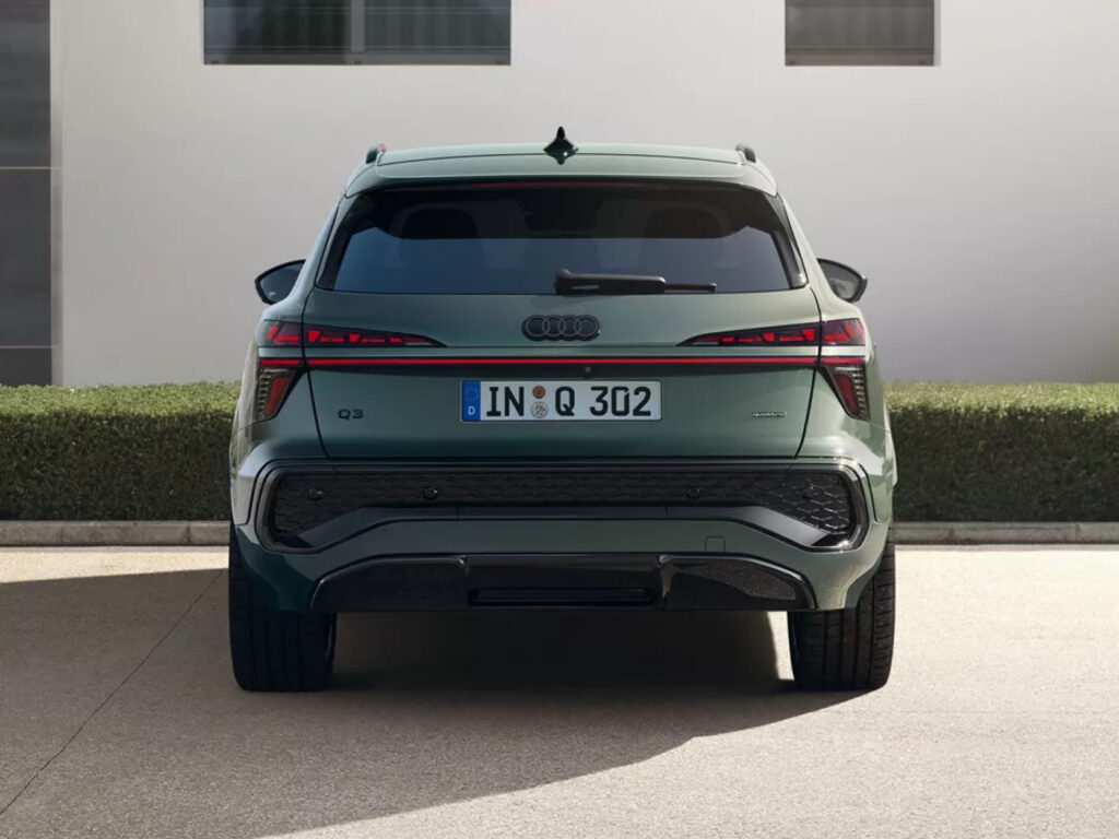 Der Audi Q3 SUV beeindruckt mit seiner Frontansicht samt aufrecht positioniertem Kühlergrill. Die auffälligen L-Flügel mit den ausgeprägten Lufteinlässen in Kombination mit den schmalen Scheinwerfern verstärken das souveräne Auftreten.
